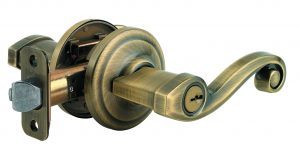 Kwikset 740LL x US5 US5-Antique Brass Finish Clear Packaged Adjustable Backset Keyed Lever Closeout Special $12.00ea.