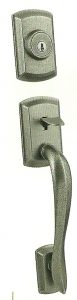 Weiser GAC9471AVH/H x 502 Avalon Handleset Hancock Interior Trim Design 502-Rustic Pewter Finish Clear Packaged Smart Keyed Adjustable Backset Closeout $40.00ea.